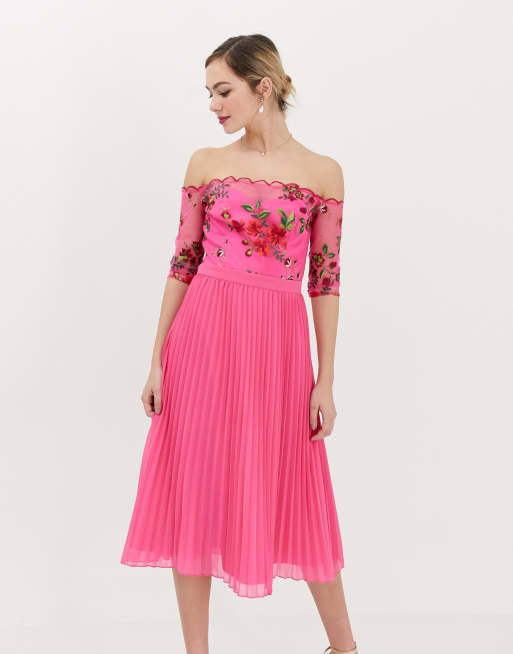 Fuchsia pleated clearance chiffon midi dress, Fuchsia Satin Pleated Midi Dress Dresses PrettyLittleThing USA clearance