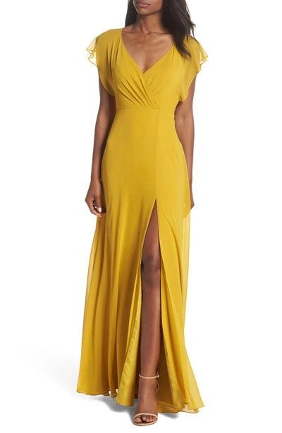 Jenny Yoo Alanna Open Back Chiffon Gown In Chartreuse ModeSens
