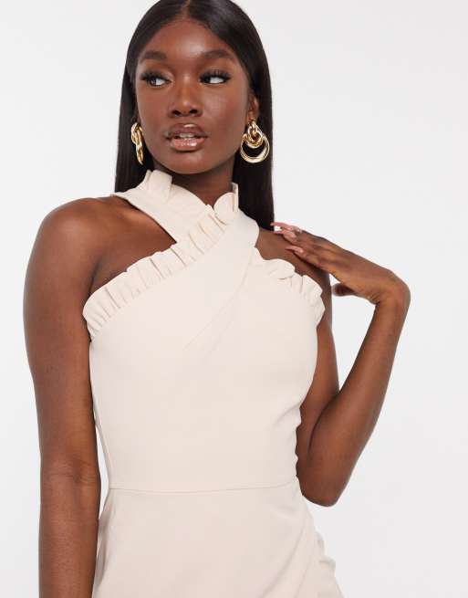 Lavish alice halter neck clearance wrap front midi dress, Lavish Alice One Shoulder Diamante Trim Wrap Midi Dress in White clearance
