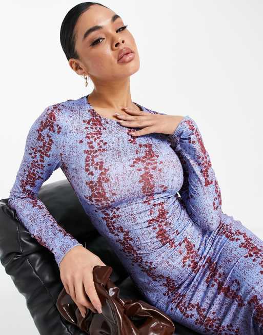 Ei8th Hour bodycon maxi dress with low back in blue multi print ASOS