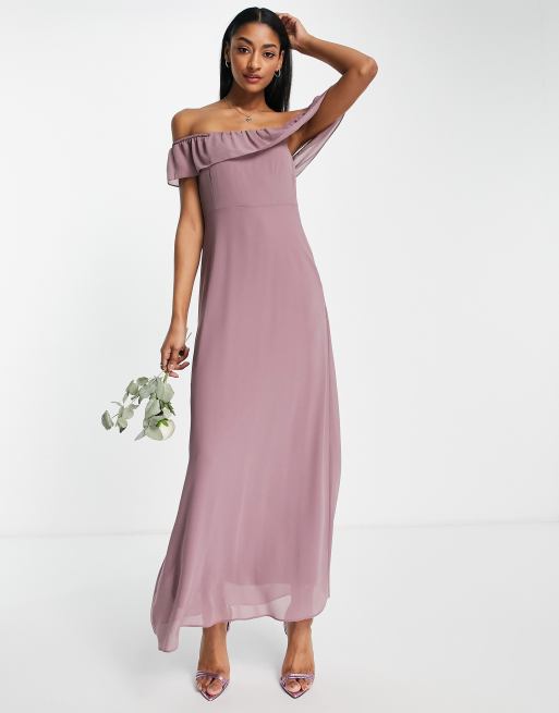 Vila bridesmaids off shoulder maxi dress in purple