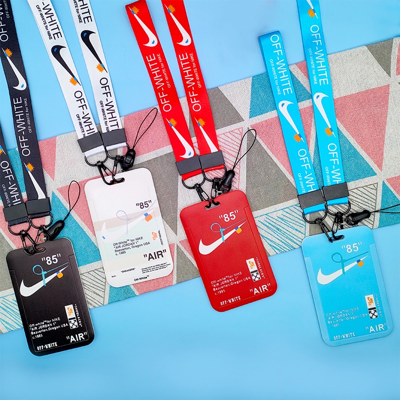 Long Short Lanyard With Card Holder OFF White Strap ID Card For