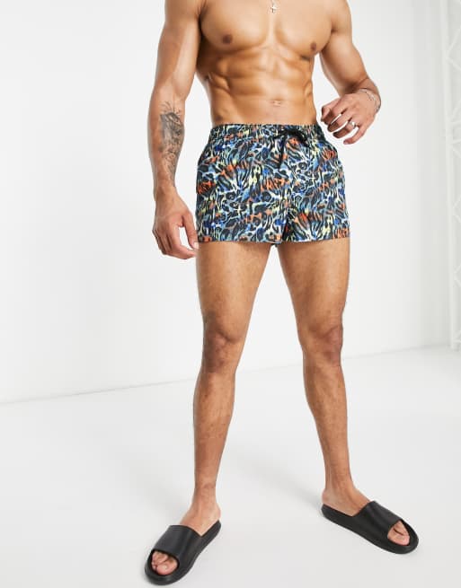 ASOS DESIGN swim shorts in super short length in leopard print ASOS