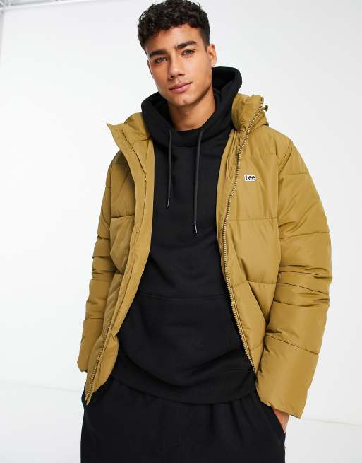 Lee logo hooded puffer jacket in tan ASOS