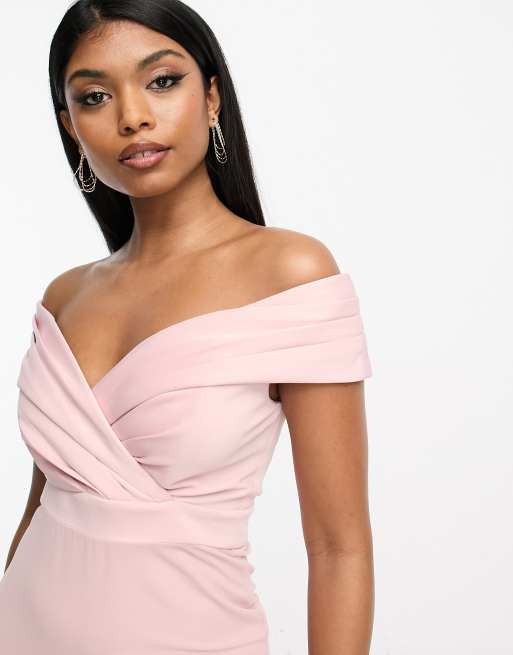 TFNC Bridesmaids bardot fitted maxi dress in mauve