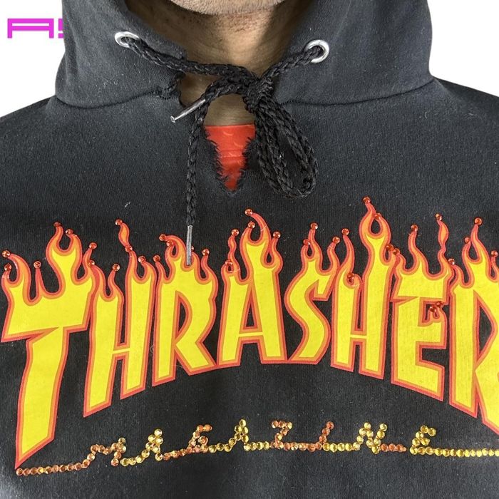 Custom ASTROBOI THRASHER CROPPED RHINESTONE HOODIE BLACK Grailed