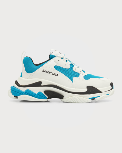 Balenciaga Men s Triple s Logotype Mesh Trainers In White navy