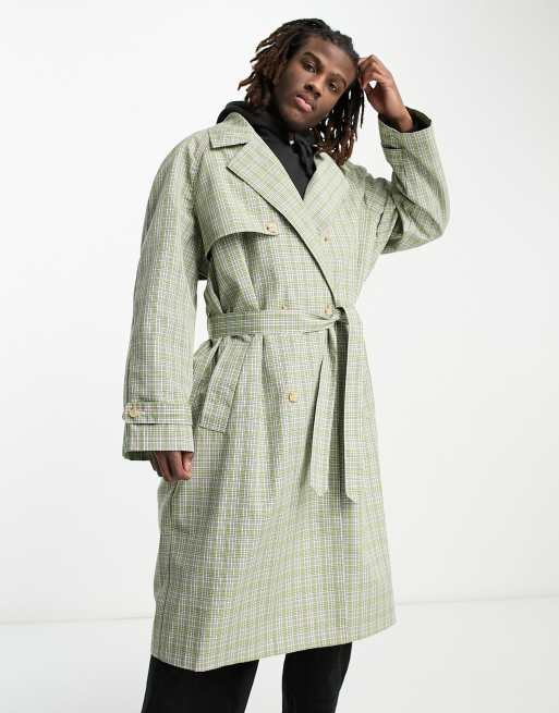 ASOS DESIGN oversized trench coat in green fluor plaid ASOS
