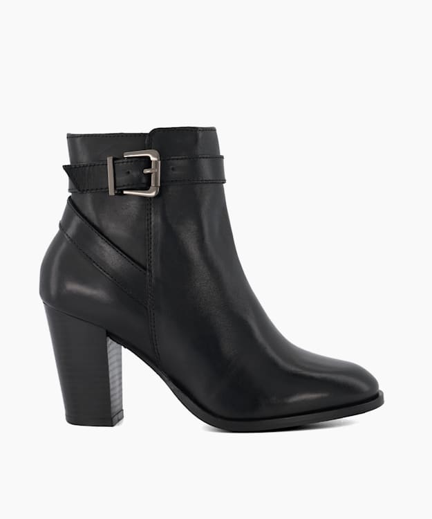 Philippa 2 Black Cone Heeled Leather Ankle Boots Dune London